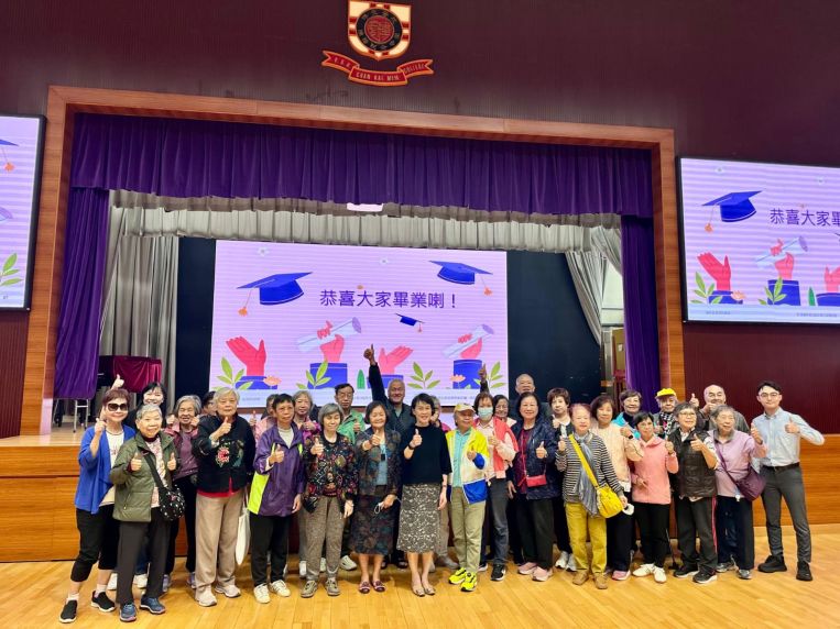29位長者學員與陳楷中學鄭校長一同合照留念,紀念成功通過小測驗和完成整個課程,大家都很高興有機會接受訓練成為精明的防騙高手!