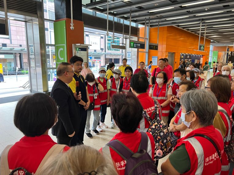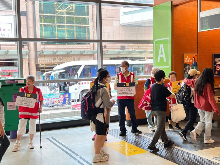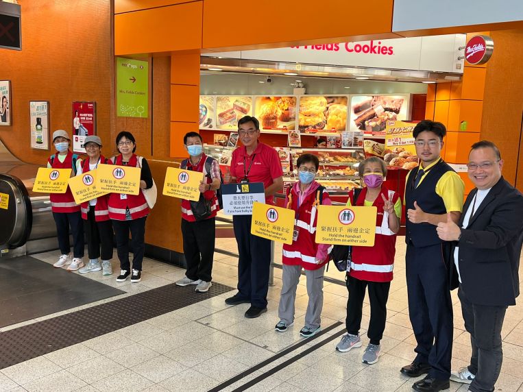 最後,我們乘坐港鐵雙層巴士專車前往寶琳站,分組在扶手梯附近和月台旁進行安全推廣活動,提醒公眾保持安全意識。