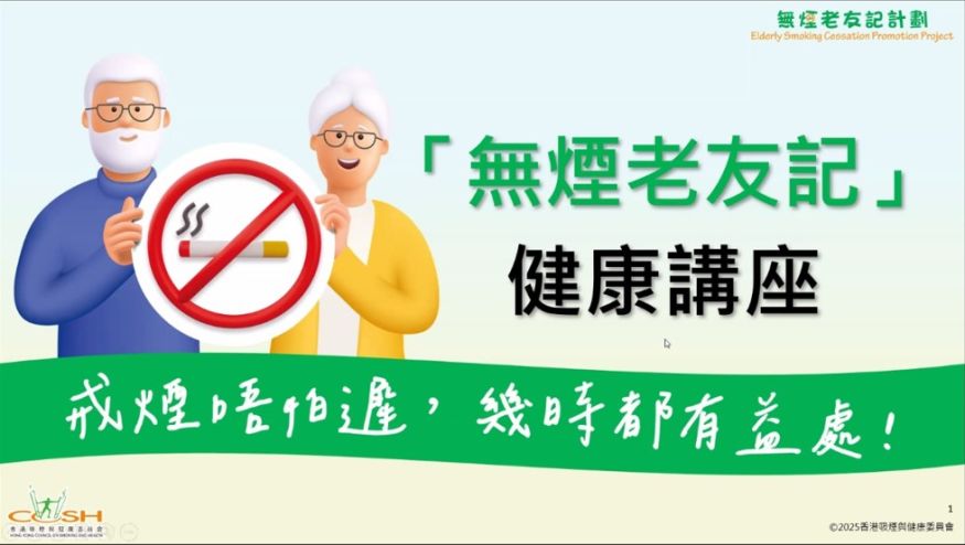 聯網邀請到香港吸煙與健康委員會教育幹事為我們講解煙草的禍害、香港現時控煙法例、戒煙的資訊、煙草商公關營銷策略等。講座完結後更有招募參加者成為無煙老友計劃宣傳大使環節,呼籲大家一同向身邊的親友宣傳無煙訊息。