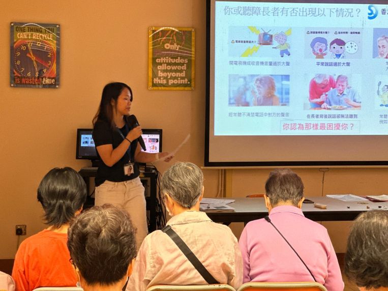 香港聾人福利促進會社工姑娘為我們講解聽力障礙、常見長者聽覺問題和聽力退化與健康影響,大家都好留心和自行評估自己的聽力狀況!