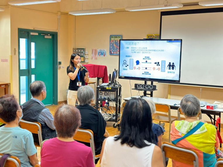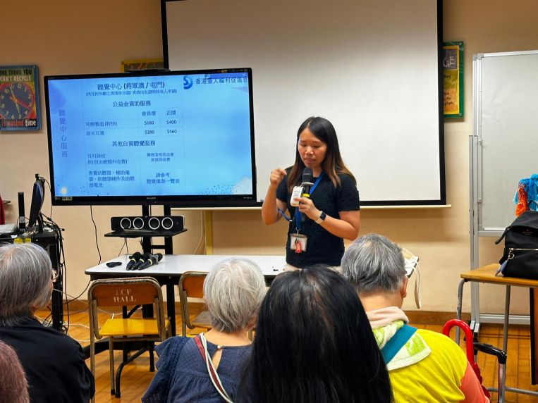 香港聾人福利促進會社工為我們講解和示範聽障長者和照顧者相處上可能發生的問題,以及解決問題的建議,又邀請了學員即場角色扮演,感受雙方的難處。