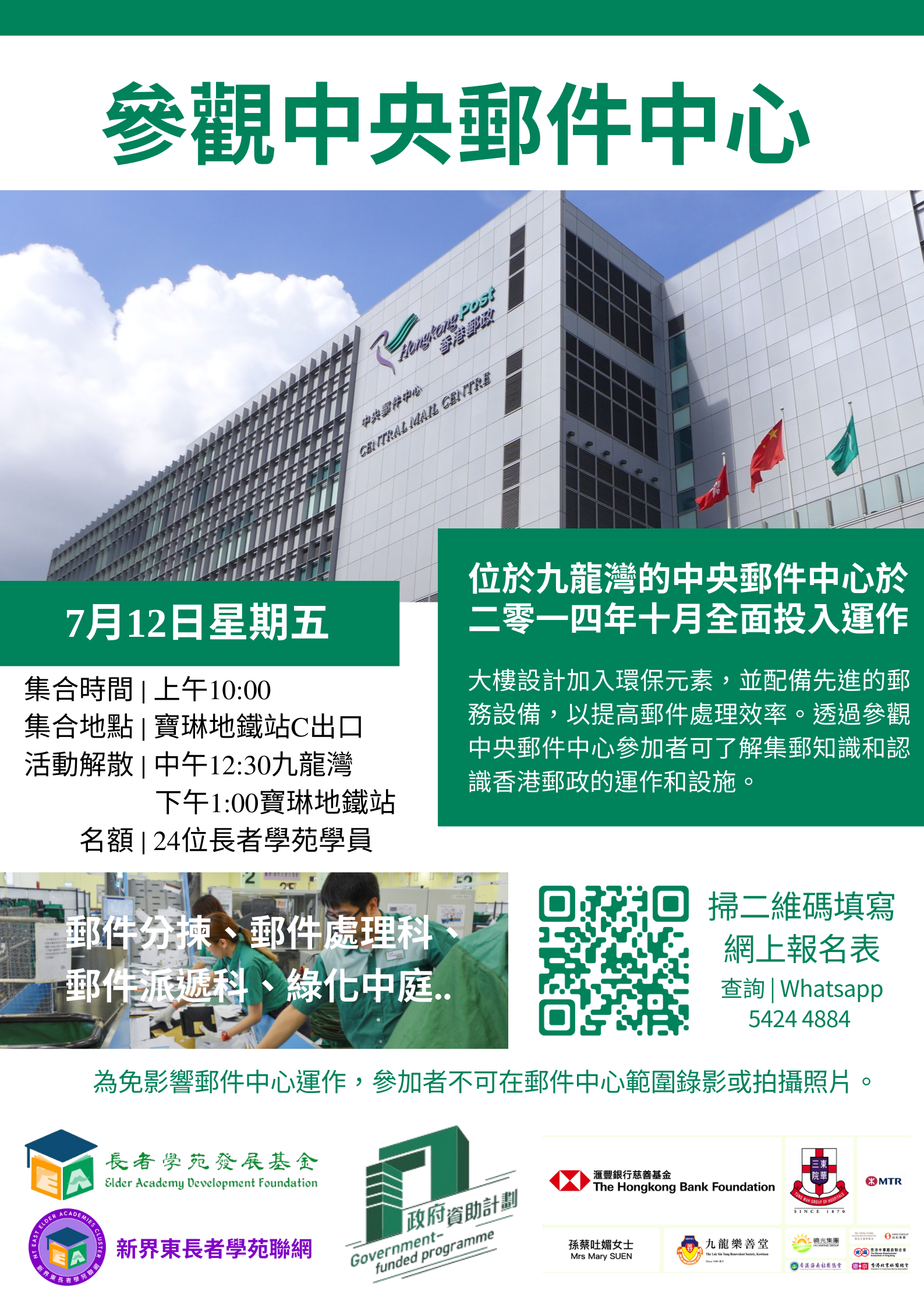 位於九龍灣的中央郵件中心於二零一四年十月全面投入運作。大樓設計加入環保元素,並配備先進的郵務設備,以提高郵件處理效率。透過參觀中央郵件中心參加者可了解集郵知識和認識香港郵政的運作和設施。
