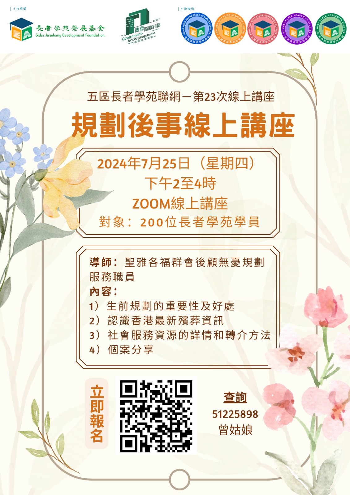 五區長者學苑聯網第23次線上講座 – 規劃後事線上講座