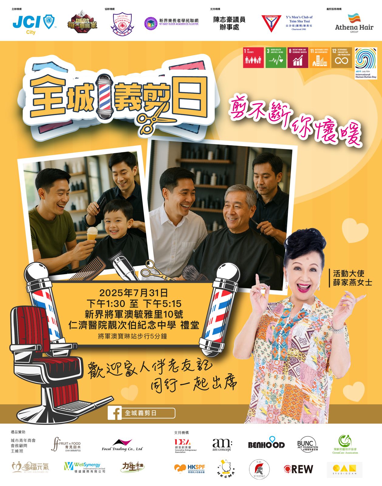 內容:由城市青年商會主辦免費義工剪髮服務,還有攤位遊戲互動,向長者傳遞愛心,今年主題為「全城義剪 關愛盡顯」。