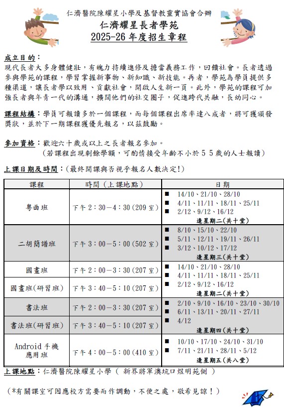 仁濟耀星長者學苑新學年招生喇!