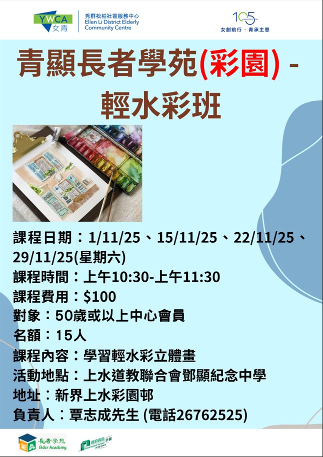 青顯長者學苑輕水彩班開班喇!快D報名啦!