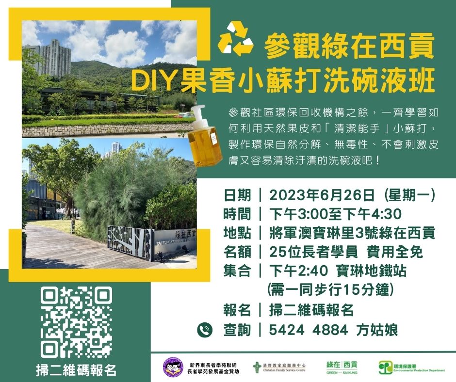 您是否想要參加一個充滿活力的環保活動,一邊學習製作環保洗碗液,一邊認識志同道合的朋友呢?那麼就趕快報名參加我們的「參觀綠在西貢 | DIY果香小蘇打洗碗液班」吧!