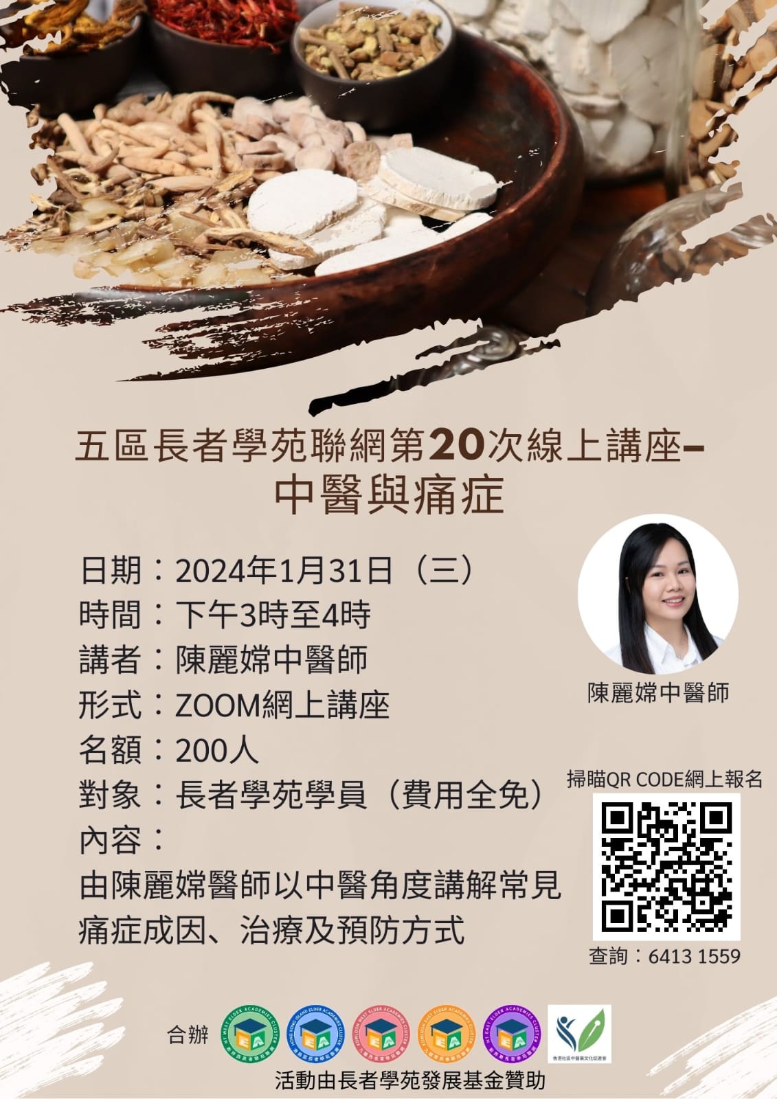 五區長者學苑聯網第20次線上講座–中醫與痛症