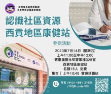 誠意邀請各位長者學苑朋友參觀 西貢地區康健站 Sai Kung DHC Express ,讓您更深入了解社區資源和健康服務!康健站的社工會向您介紹服務特色和帶您參觀中心設施。有興趣的朋友,別忘了報名參加!